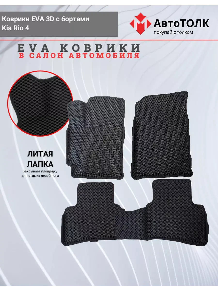 Коврики EVA с бортами для салона автомобиля Kia Rio 4 — это идеальные аксессуары для защиты вашего автомобиля. Эти автомобильные коврики изготовлены из высококачественного материала EVA, который обеспечивает долговечность и устойчивость к износу. Коврики разработаны специально для модели Kia Rio, что гарантирует идеальную посадку и защиту салона от грязи и влаги. Эти аксессуары для машины обладают уникальной структурой, которая предотвращает скольжение и обеспечивает надежную фиксацию в салоне. Коврики EVA легко чистятся и не впитывают запахи, что делает их практичным выбором для любого владельца автомобиля. Благодаря бортикам, коврики защищают салон от попадания грязи и жидкости, сохраняя его в идеальном состоянии. Коврики для Kia Rio 4 — это не только функциональность, но и стильный внешний вид, который подчеркнет индивидуальность вашего автомобиля. Эти аксессуары подходят для всех сезонов и обеспечивают комфорт в любую погоду. Выбирая коврики EVA, вы обеспечиваете надежную защиту и эстетичный вид салона вашей машины.