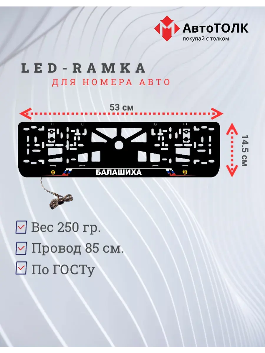 Ищете стильное и практичное обновление для вашего автомобиля? Рамка для номера с LED подсветкой надписи от бренда АвтоТОЛК — именно то, что вам нужно! Это инновационное решение не только придаст вашему автомобилю современный вид, но и повысит его заметность на дороге. Яркая ЛЭД рамка под номер обеспечивает четкое и равномерное освещение, что гарантирует отличную видимость вашего государственного номера в любое время суток и при любых погодных условиях. За счет использования высококачественных LED элементов, рамка отличается длительным сроком службы. Номерная рамка с вашим лого или логотипом торговой марки станет оригинальным дополнением, подчеркивающим индивидуальность вашего авто. Устанавливать рамки с LED подсветкой легко и удобно, они совместимы со стандартными номерными знаками и не требуют специальных навыков для монтажа. Независимо от того, выбираете ли вы рамки с ЛЭД подсветкой для себя или в подарок автолюбителю, этот автоаксессуар станет надежным и стильным приобретением. Тонкий, но прочный корпус рамки выполнен из высококачественных материалов, что обеспечивает устойчивость к механическим повреждениям, влаге и неблагоприятным погодным условиям. Обновите внешний вид своего автомобиля с применением современных технологий — номерные рамки с LED подсветкой от АвтоТОЛК это комбинация стиля, удобства и безопасности.