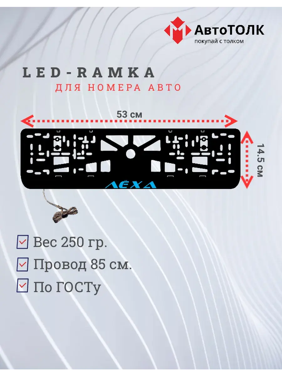 Ищете стильное и практичное обновление для вашего автомобиля? Рамка для номера с LED подсветкой надписи от бренда АвтоТОЛК — именно то, что вам нужно! Это инновационное решение не только придаст вашему автомобилю современный вид, но и повысит его заметность на дороге. Яркая ЛЭД рамка под номер обеспечивает четкое и равномерное освещение, что гарантирует отличную видимость вашего государственного номера в любое время суток и при любых погодных условиях. За счет использования высококачественных LED элементов, рамка отличается длительным сроком службы. Номерная рамка с вашим лого или логотипом торговой марки станет оригинальным дополнением, подчеркивающим индивидуальность вашего авто. Устанавливать рамки с LED подсветкой легко и удобно, они совместимы со стандартными номерными знаками и не требуют специальных навыков для монтажа. Независимо от того, выбираете ли вы рамки с ЛЭД подсветкой для себя или в подарок автолюбителю, этот автоаксессуар станет надежным и стильным приобретением. Тонкий, но прочный корпус рамки выполнен из высококачественных материалов, что обеспечивает устойчивость к механическим повреждениям, влаге и неблагоприятным погодным условиям. Обновите внешний вид своего автомобиля с применением современных технологий — номерные рамки с LED подсветкой от АвтоТОЛК это комбинация стиля, удобства и безопасности.
