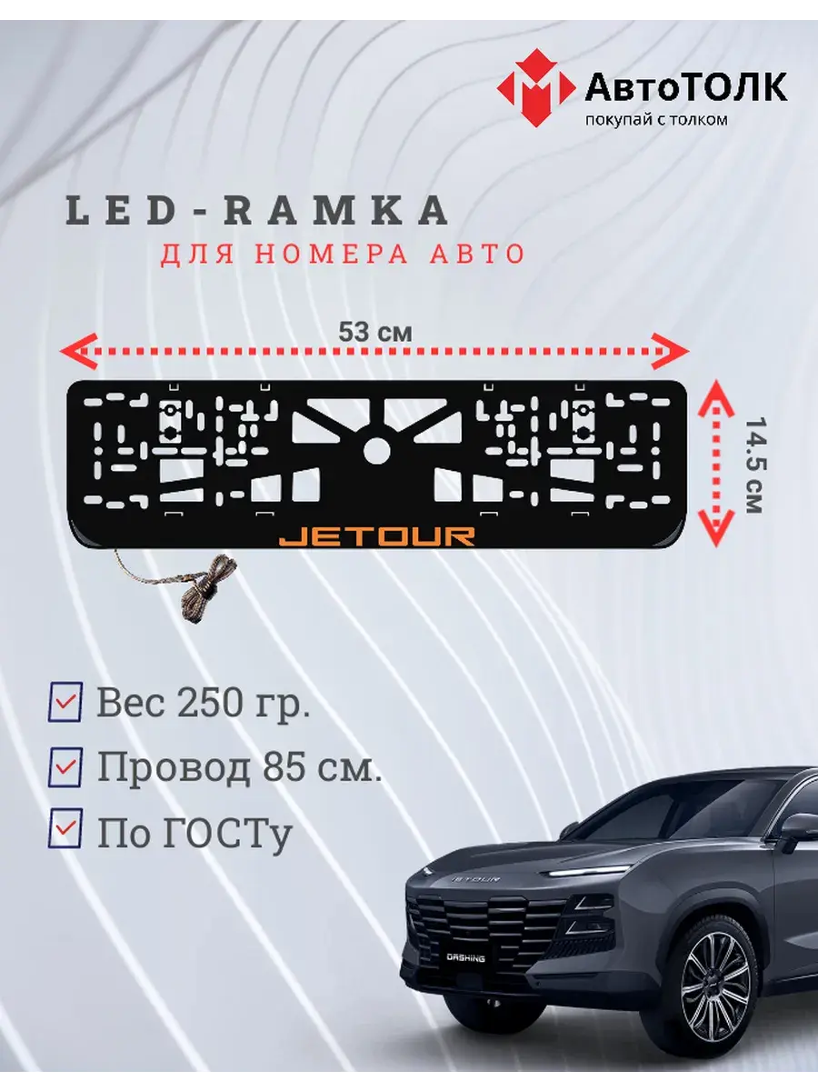 Ищете стильное и практичное обновление для вашего автомобиля? Рамка для номера с LED подсветкой надписи от бренда АвтоТОЛК — именно то, что вам нужно! Это инновационное решение не только придаст вашему автомобилю современный вид, но и повысит его заметность на дороге. Яркая ЛЭД рамка под номер обеспечивает четкое и равномерное освещение, что гарантирует отличную видимость вашего государственного номера в любое время суток и при любых погодных условиях. За счет использования высококачественных LED элементов, рамка отличается длительным сроком службы. Номерная рамка с вашим лого или логотипом торговой марки станет оригинальным дополнением, подчеркивающим индивидуальность вашего авто. Устанавливать рамки с LED подсветкой легко и удобно, они совместимы со стандартными номерными знаками и не требуют специальных навыков для монтажа. Независимо от того, выбираете ли вы рамки с ЛЭД подсветкой для себя или в подарок автолюбителю, этот автоаксессуар станет надежным и стильным приобретением. Тонкий, но прочный корпус рамки выполнен из высококачественных материалов, что обеспечивает устойчивость к механическим повреждениям, влаге и неблагоприятным погодным условиям. Обновите внешний вид своего автомобиля с применением современных технологий — номерные рамки с LED подсветкой от АвтоТОЛК это комбинация стиля, удобства и безопасности.