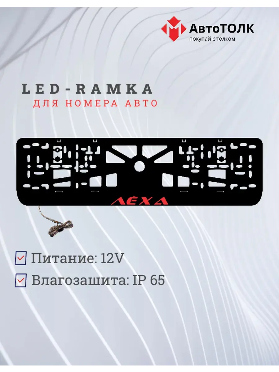 Ищете стильное и практичное обновление для вашего автомобиля? Рамка для номера с LED подсветкой надписи от бренда АвтоТОЛК — именно то, что вам нужно! Это инновационное решение не только придаст вашему автомобилю современный вид, но и повысит его заметность на дороге. Яркая ЛЭД рамка под номер обеспечивает четкое и равномерное освещение, что гарантирует отличную видимость вашего государственного номера в любое время суток и при любых погодных условиях. За счет использования высококачественных LED элементов, рамка отличается длительным сроком службы. Номерная рамка с вашим лого или логотипом торговой марки станет оригинальным дополнением, подчеркивающим индивидуальность вашего авто. Устанавливать рамки с LED подсветкой легко и удобно, они совместимы со стандартными номерными знаками и не требуют специальных навыков для монтажа. Независимо от того, выбираете ли вы рамки с ЛЭД подсветкой для себя или в подарок автолюбителю, этот автоаксессуар станет надежным и стильным приобретением. Тонкий, но прочный корпус рамки выполнен из высококачественных материалов, что обеспечивает устойчивость к механическим повреждениям, влаге и неблагоприятным погодным условиям. Обновите внешний вид своего автомобиля с применением современных технологий — номерные рамки с LED подсветкой от АвтоТОЛК это комбинация стиля, удобства и безопасности.