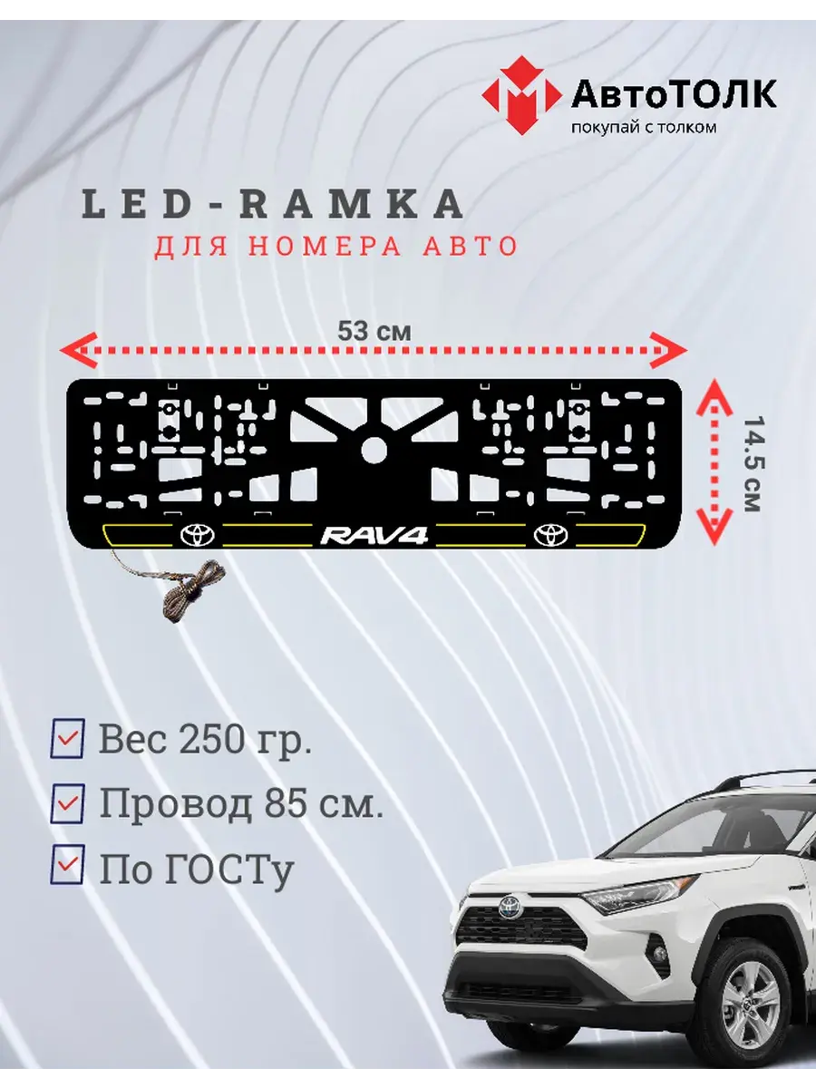 Ищете стильное и практичное обновление для вашего автомобиля? Рамка для номера с LED подсветкой надписи от бренда АвтоТОЛК — именно то, что вам нужно! Это инновационное решение не только придаст вашему автомобилю современный вид, но и повысит его заметность на дороге. Яркая ЛЭД рамка под номер обеспечивает четкое и равномерное освещение, что гарантирует отличную видимость вашего государственного номера в любое время суток и при любых погодных условиях. За счет использования высококачественных LED элементов, рамка отличается длительным сроком службы. Номерная рамка с вашим лого или логотипом торговой марки станет оригинальным дополнением, подчеркивающим индивидуальность вашего авто. Устанавливать рамки с LED подсветкой легко и удобно, они совместимы со стандартными номерными знаками и не требуют специальных навыков для монтажа. Независимо от того, выбираете ли вы рамки с ЛЭД подсветкой для себя или в подарок автолюбителю, этот автоаксессуар станет надежным и стильным приобретением. Тонкий, но прочный корпус рамки выполнен из высококачественных материалов, что обеспечивает устойчивость к механическим повреждениям, влаге и неблагоприятным погодным условиям. Обновите внешний вид своего автомобиля с применением современных технологий — номерные рамки с LED подсветкой от АвтоТОЛК это комбинация стиля, удобства и безопасности.