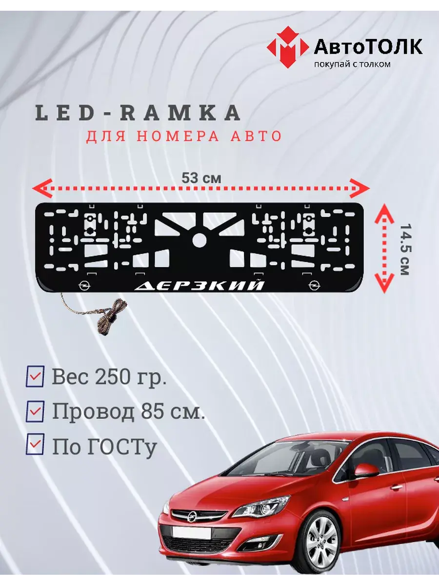 Ищете стильное и практичное обновление для вашего автомобиля? Рамка для номера с LED подсветкой надписи от бренда АвтоТОЛК именно то, что вам нужно! Это инновационное решение не только придаст вашему автомобилю современный вид, но и повысит его заметность на дороге. Яркая ЛЭД рамка под номер обеспечивает четкое и равномерное освещение, что гарантирует отличную видимость вашего государственного номера в любое время суток и при любых погодных условиях. За счет использования высококачественных LED элементов, рамка отличается длительным сроком службы. Номерная рамка с вашим лого или логотипом торговой марки станет оригинальным дополнением, подчеркивающим индивидуальность вашего авто. Устанавливать рамки с LED подсветкой легко и удобно, они совместимы со стандартными номерными знаками и не требуют специальных навыков для монтажа. Независимо от того, выбираете ли вы рамки с ЛЭД подсветкой для себя или в подарок автолюбителю, этот автоаксессуар станет надежным и стильным приобретением. Тонкий, но прочный корпус рамки выполнен из высококачественных материалов, что обеспечивает устойчивость к механическим повреждениям, влаге и неблагоприятным погодным условиям. Обновите внешний вид своего автомобиля с применением современных технологий номерные рамки с LED подсветкой от АвтоТОЛК это комбинация стиля, удобства и безопасности.