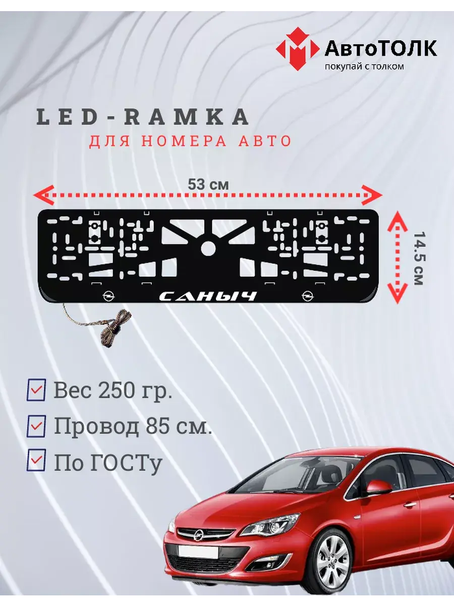 Ищете стильное и практичное обновление для вашего автомобиля? Рамка для номера с LED подсветкой надписи от бренда АвтоТОЛК именно то, что вам нужно! Это инновационное решение не только придаст вашему автомобилю современный вид, но и повысит его заметность на дороге. Яркая ЛЭД рамка под номер обеспечивает четкое и равномерное освещение, что гарантирует отличную видимость вашего государственного номера в любое время суток и при любых погодных условиях. За счет использования высококачественных LED элементов, рамка отличается длительным сроком службы. Номерная рамка с вашим лого или логотипом торговой марки станет оригинальным дополнением, подчеркивающим индивидуальность вашего авто. Устанавливать рамки с LED подсветкой легко и удобно, они совместимы со стандартными номерными знаками и не требуют специальных навыков для монтажа. Независимо от того, выбираете ли вы рамки с ЛЭД подсветкой для себя или в подарок автолюбителю, этот автоаксессуар станет надежным и стильным приобретением. Тонкий, но прочный корпус рамки выполнен из высококачественных материалов, что обеспечивает устойчивость к механическим повреждениям, влаге и неблагоприятным погодным условиям. Обновите внешний вид своего автомобиля с применением современных технологий номерные рамки с LED подсветкой от АвтоТОЛК это комбинация стиля, удобства и безопасности.