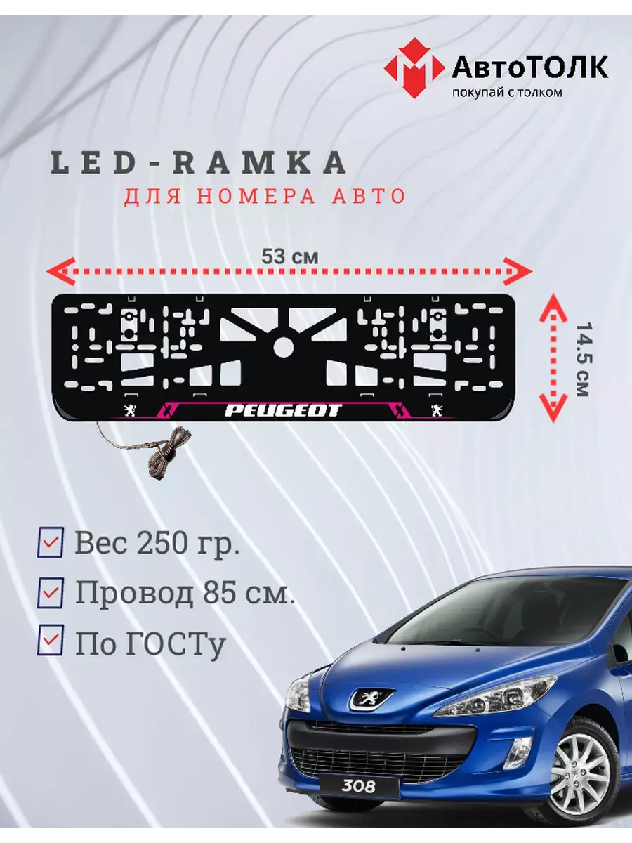 Авторамка с подсветкой - 1 шт.