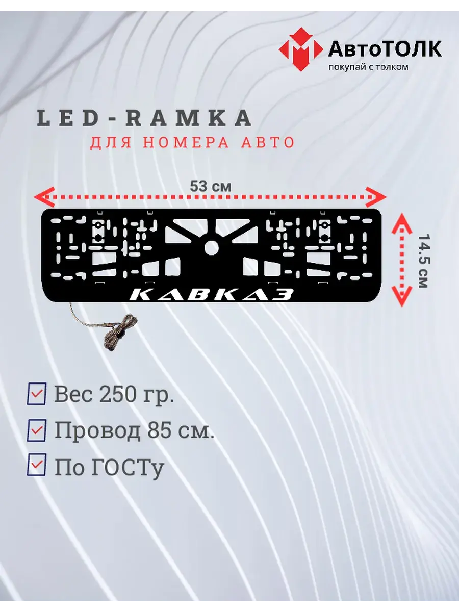 Ищете стильное и практичное обновление для вашего автомобиля? Рамка для номера с LED подсветкой надписи от бренда АвтоТОЛК — именно то, что вам нужно! Это инновационное решение не только придаст вашему автомобилю современный вид, но и повысит его заметность на дороге. Яркая ЛЭД рамка под номер обеспечивает четкое и равномерное освещение, что гарантирует отличную видимость вашего государственного номера в любое время суток и при любых погодных условиях. За счет использования высококачественных LED элементов, рамка отличается длительным сроком службы. Номерная рамка с вашим лого или логотипом торговой марки станет оригинальным дополнением, подчеркивающим индивидуальность вашего авто. Устанавливать рамки с LED подсветкой легко и удобно, они совместимы со стандартными номерными знаками и не требуют специальных навыков для монтажа. Независимо от того, выбираете ли вы рамки с ЛЭД подсветкой для себя или в подарок автолюбителю, этот автоаксессуар станет надежным и стильным приобретением. Тонкий, но прочный корпус рамки выполнен из высококачественных материалов, что обеспечивает устойчивость к механическим повреждениям, влаге и неблагоприятным погодным условиям. Обновите внешний вид своего автомобиля с применением современных технологий — номерные рамки с LED подсветкой от АвтоТОЛК это комбинация стиля, удобства и безопасности.