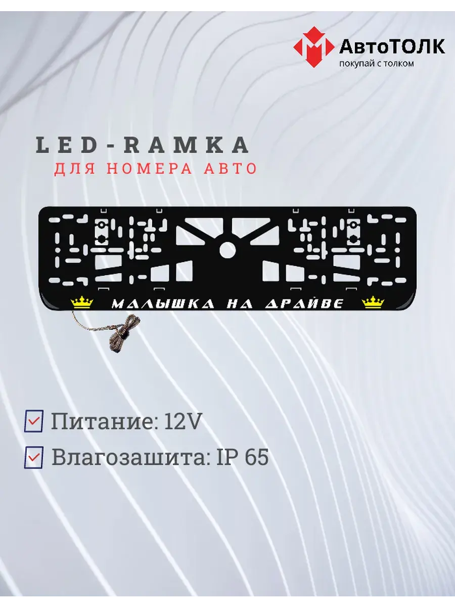 Ищете стильное и практичное обновление для вашего автомобиля? Рамка для номера с LED подсветкой надписи от бренда АвтоТОЛК — именно то, что вам нужно! Это инновационное решение не только придаст вашему автомобилю современный вид, но и повысит его заметность на дороге. Яркая ЛЭД рамка под номер обеспечивает четкое и равномерное освещение, что гарантирует отличную видимость вашего государственного номера в любое время суток и при любых погодных условиях. За счет использования высококачественных LED элементов, рамка отличается длительным сроком службы. Номерная рамка с вашим лого или логотипом торговой марки станет оригинальным дополнением, подчеркивающим индивидуальность вашего авто. Устанавливать рамки с LED подсветкой легко и удобно, они совместимы со стандартными номерными знаками и не требуют специальных навыков для монтажа. Независимо от того, выбираете ли вы рамки с ЛЭД подсветкой для себя или в подарок автолюбителю, этот автоаксессуар станет надежным и стильным приобретением. Тонкий, но прочный корпус рамки выполнен из высококачественных материалов, что обеспечивает устойчивость к механическим повреждениям, влаге и неблагоприятным погодным условиям. Обновите внешний вид своего автомобиля с применением современных технологий — номерные рамки с LED подсветкой от АвтоТОЛК это комбинация стиля, удобства и безопасности.