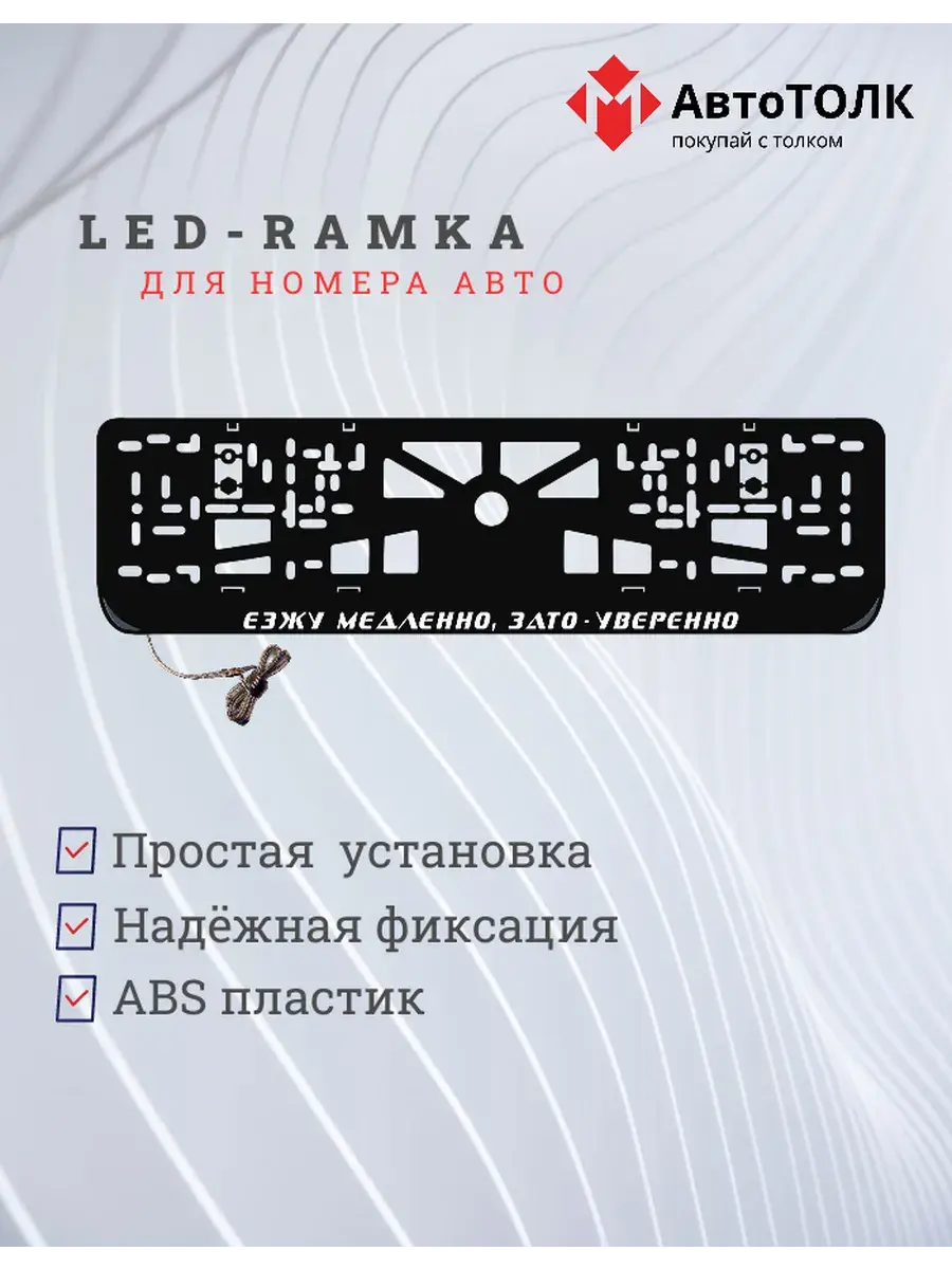Ищете стильное и практичное обновление для вашего автомобиля? Рамка для номера с LED подсветкой надписи от бренда АвтоТОЛК — именно то, что вам нужно! Это инновационное решение не только придаст вашему автомобилю современный вид, но и повысит его заметность на дороге. Яркая ЛЭД рамка под номер обеспечивает четкое и равномерное освещение, что гарантирует отличную видимость вашего государственного номера в любое время суток и при любых погодных условиях. За счет использования высококачественных LED элементов, рамка отличается длительным сроком службы. Номерная рамка с вашим лого или логотипом торговой марки станет оригинальным дополнением, подчеркивающим индивидуальность вашего авто. Устанавливать рамки с LED подсветкой легко и удобно, они совместимы со стандартными номерными знаками и не требуют специальных навыков для монтажа. Независимо от того, выбираете ли вы рамки с ЛЭД подсветкой для себя или в подарок автолюбителю, этот автоаксессуар станет надежным и стильным приобретением. Тонкий, но прочный корпус рамки выполнен из высококачественных материалов, что обеспечивает устойчивость к механическим повреждениям, влаге и неблагоприятным погодным условиям. Обновите внешний вид своего автомобиля с применением современных технологий — номерные рамки с LED подсветкой от АвтоТОЛК это комбинация стиля, удобства и безопасности.